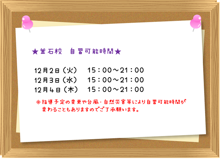 12/2-12/4 自習可能時間