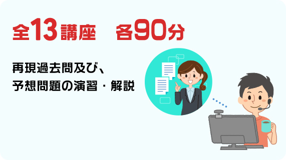 出題の傾向から具体的な練習問題があり、他のところにはないほどの情報を提供していただきました。この講座のおかげで本番で戦えるよう特訓できたと思います。