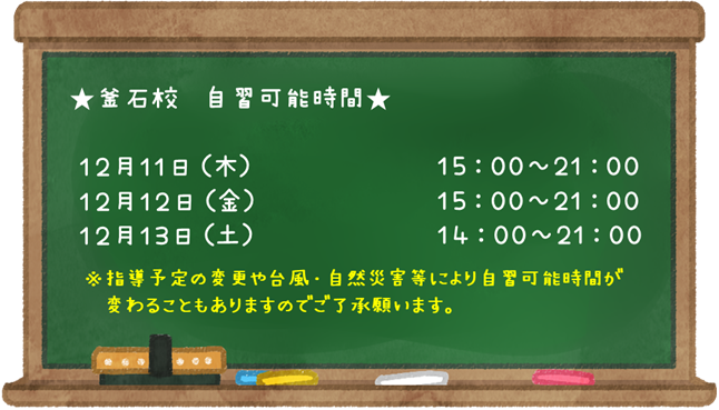 12/11-12/13 自習可能時間