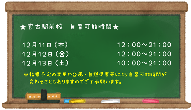12/11-12/13 自習可能時間