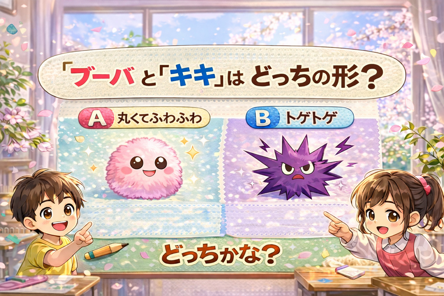 まずは直感で考えてみてください。画像の2つのキャラクターに「ブーバ」と「キキ」と名前をつけると...